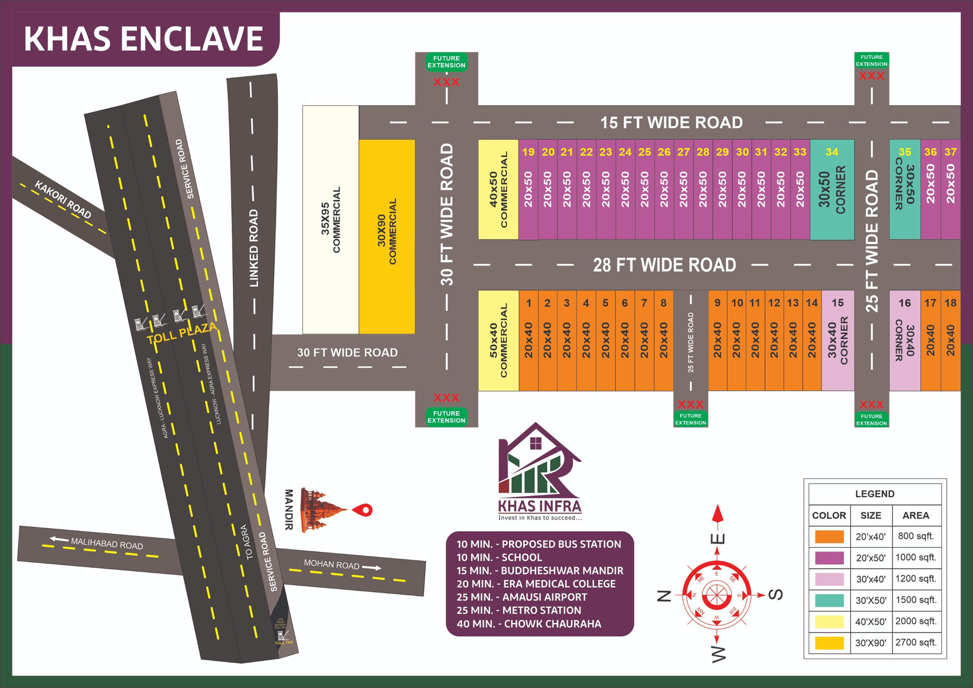 Khas Infra's awaitng project Khas Enclave near the Agra-Lucknow Expressway offer residential and commercial options like plots, apartments, and villas, and also including commercial land, farmhouses, and builder floors. Khas Enclave is popular project include all type of modern amenities in Lucknow and developments in the Lucknow-Agra Urban Centre, focusing on a blend of luxury living and investment opportunities due to improved connectivity and upcoming infrastructure.